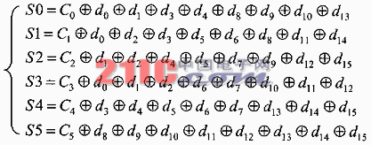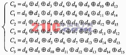 其中,d0~d15為16位數(shù)據(jù)(15為最高位MSB,0為最低位LSB),C0~C5為產(chǎn)生的六位監(jiān)督碼,表示進(jìn)行異或運(yùn)算。