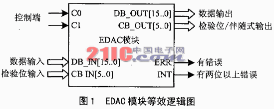利用這個(gè)EDAC模塊再輔以簡(jiǎn)單的外圍電路就可以實(shí)現(xiàn)較強(qiáng)的EDAC功能,可以把這一部分整個(gè)電路都集成到FPGA中。