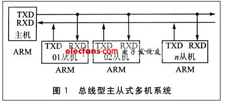 所謂主從式多機系統(tǒng),即在數(shù)個ARM(或單片機)中,有一個是主機,其余的為從機。從機要服從主