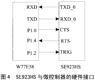 根據表2給出的接口說明,設計了SE923HS與微控制器的硬件接口,如圖4所示。