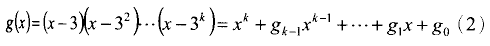 對一組給定的數據碼字和一選定的錯誤糾正等級,錯誤糾正碼字為符號數據多項式d(x)乘以xk,然后除以生成多項式g(x),所得為余式的各系數的補數。