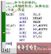 為進行程序的調(diào)試,我們首先給源程序制造一個錯誤,將延時子程序的第三行“DJNZ