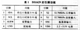 DS1629由數(shù)字溫度傳感器、實時時鐘、兩線串行接口、數(shù)據(jù)寄存器、溫度和時鐘報警比較器及時鐘分頻器和緩沖器6個部分組成。