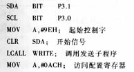 數(shù)字表的功能包括溫度的測量顯示和時鐘兩個方面,因而在軟件設(shè)計中應(yīng)同時考慮。溫度表和時鐘功能由按鍵S3選擇,上電后的默認狀態(tài)為自動顯示測量的溫度,按一下S3則切換到時間顯示,再按一下又返回到溫度顯示。默認狀態(tài)下按鍵S2為秒表功能鍵,按1次開始計時,按兩次停止計時,按3次則清0,再按則返回到初始狀態(tài)。默認狀態(tài)下按鍵S1為調(diào)整時間的功能鍵,按1次S1設(shè)定小時,此時S2為加1鍵,按1次小時加1,S3為減1鍵,按1次小時減1;按2次S1設(shè)定分鐘,此時S2、S3的作用同前;按3次S1則返回到初始狀態(tài)。根據(jù)這些功能,軟件設(shè)計由初始化、功能鍵處理、時間顯示、溫度測量及顯示等幾個部分組成。初始化部分完成單片機中斷、定時器、片內(nèi)存儲單元和DS1629的初始配置;功能鍵處理部分則進行鍵盤的掃描及相應(yīng)的處理;時間及溫度顯示則是讀取DS1629的時間和溫度參數(shù),進行轉(zhuǎn)換后送出顯示。下面給出單片機對DS1629操作的程序段,假定單片機的P3.1接SDA,P3.0接SCL,設(shè)定DS1629的工作模式為單次轉(zhuǎn)換模式,禁止時鐘輸出,對溫度及時鐘均為高電平報警,則相應(yīng)的程序段如下:
