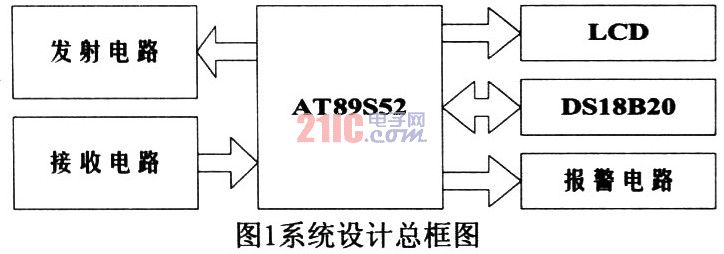 系統(tǒng)由AT89C51控制器、HC-SR04超聲波模塊、DS18B20溫度測量模塊、聲音報警電路