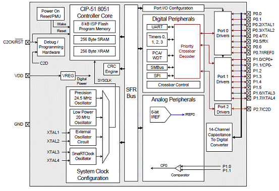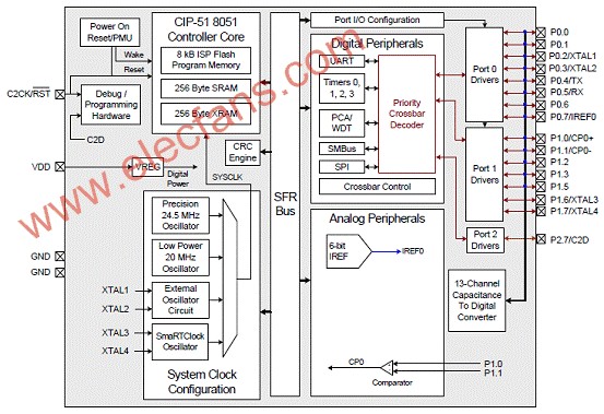 圖2。C8051F991方框圖