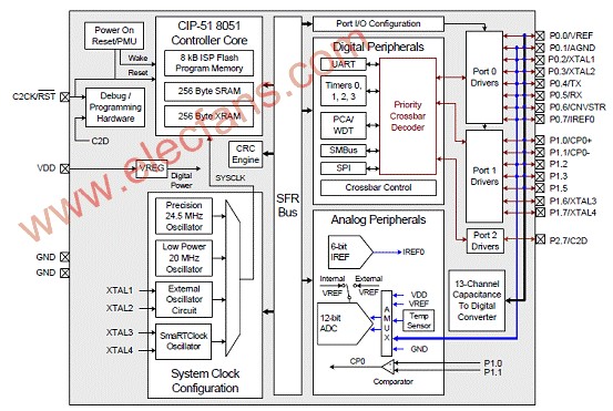 圖4。C8051F997方框圖