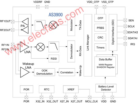 Aaustriamicrosystems公司的AS3900是低功耗27MHz FSK收發(fā)器,適用于電池工作的短距離范圍設(shè)備(SRD)的應(yīng)用.