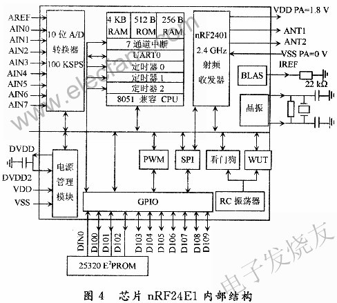 利用微功率RF芯片(nRF24E1)設(shè)計(jì)了一個(gè)體積小、成本低、性能穩(wěn)定、功耗低、數(shù)據(jù)傳輸可靠的點(diǎn)對(duì)多點(diǎn)的無(wú)線射頻數(shù)據(jù)采集系統(tǒng),實(shí)現(xiàn)了對(duì)多個(gè)采樣點(diǎn)的實(shí)時(shí)數(shù)據(jù)無(wú)線采集。經(jīng)過(guò)實(shí)際使用,DSl8820和單片機(jī)AT89S52以及RF芯片組成的測(cè)溫系統(tǒng),完全符合用戶的需要。