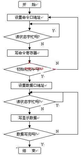 整個系統(tǒng)由單片機(jī)、控制驅(qū)動電路SSD1303和OLED顯示屏三部分組成.SSD1303與單片機(jī)接口的引腳有:DO~D7為與單片機(jī)接口的數(shù)據(jù)總線,R/W(RW#)為讀寫選擇信號,D/C為數(shù)據(jù)/命令選擇信號,CS#為片選信號,低電平有效,E(RD#)為使能信號,RES#為復(fù)位信號。單片機(jī)采用ATMEL 公司生產(chǎn)的低功耗、高性能的AT89C51, AT89C51與SSD1303和顯示屏的硬件接線如圖2所示,P1.0、P1.1、P1.2、P1.3、P1.4分別與SSD1303的R/W(RW#)、D/C、CS#、E(RD#)、RES#相連,P0口與SSD1303的數(shù)據(jù)總線相連。其它引腳的連線VCC接12V,VDD接2.7V,VSS接地等。下面通過程序來控制這些引腳,從而使OLED顯示需要的漢字或圖形.主程序軟件流程圖如圖3所示。