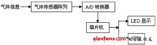 采用氣體傳感器陣列采集氣體信息,通過(guò)以AT89C51 和ADC0809 組成的核心單元進(jìn)行數(shù)據(jù)采集和數(shù)據(jù)處理,以LED 顯示器顯示結(jié)果,實(shí)現(xiàn)了對(duì)多種氣體的識(shí)別和檢測(cè)。