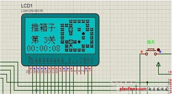 單片機推箱子游戲程序模擬仿真本程序仿真了ks0108驅動芯片的12864液晶屏,獨立的5個按鍵,程序的主要部分是推箱子的部分的邏輯。增加計時功能,關數達到20關,可以加減關數。http