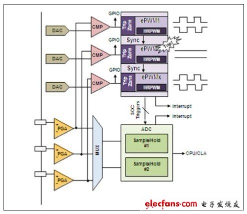 從控制外設(shè)的角度,Piccolo 微控制器對 PWM 進(jìn)行了改進(jìn),提供了更靈活的 PWM 生成、高分辨率的 PWM 功能、增強(qiáng)的死區(qū)支持和更先進(jìn)的 PWM 跳閘功能。 在遷移至 Piccolo 微控制器后,設(shè)計(jì)人員應(yīng)該能夠獲得更高的控制性能、功效和系統(tǒng)安全。 同樣,Piccolo 微控制器的分辨率得到了提高,可以獲得更準(zhǔn)確更快速的轉(zhuǎn)換速度,從而實(shí)現(xiàn)更高頻率的控制回路,而雙取樣保持功能則可以在取樣多個(gè)輸入時(shí)實(shí)現(xiàn)同步零延遲。