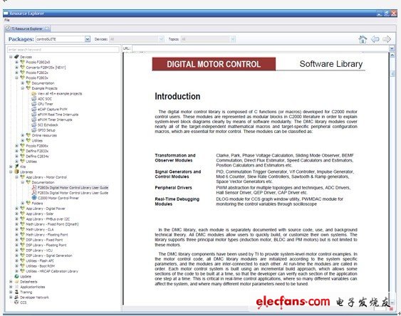 全部C2000 軟件是通過 controlSUITETM 軟件套件提供的。controlSUITE 是一款完全免費(fèi)的單一訪問點(diǎn),可獲取所有 C2000 器件軟件、開發(fā)套件資源、軟件庫、文檔和設(shè)計(jì)支持。controlSUITE 配備有圖形用戶界面 (GUI),可輕松訪問 C2000 軟件和文檔,同樣它也提供自動(dòng)更新實(shí)用程序,可讓用戶獲得最新的 C2000 軟件和文檔。 用戶可訪問前面提到的器件庫和應(yīng)用庫以及詳細(xì)的示例項(xiàng)目,快速開始使用 C2000 器件。 其中還提供了詳細(xì)的文檔,包括用戶指南、應(yīng)用手冊和白皮書。 無需通過 Web 四處搜索器件標(biāo)題、庫或文檔,controlSUITE 即是可以滿足所有 C2000 微控制器需求的集中資源。 立即通過 www.ti.com/controlSUITE 下載 controlSUITE。