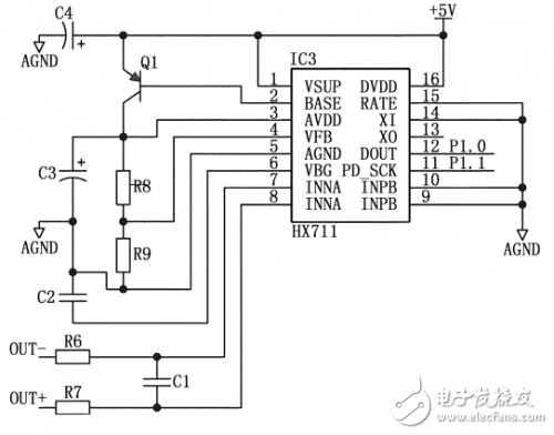 43 ;對于單片機來說,獲取此刻的重量值,只需一個簡單函數讀取此時AD值,并通過一個線性方程的轉換后即可獲取此時物體的精確重量。2.硬件電路介紹先介紹HX711芯片的硬件電路,如圖:該方案使用內部時...