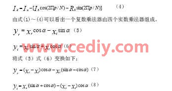???? 可見復(fù)數(shù)乘法需要的實(shí)數(shù)乘法由原來的4個(gè)變?yōu)?個(gè),式中? 因子可作為常數(shù)存入ROM,這樣復(fù)數(shù)乘法只需3個(gè)實(shí)數(shù)乘法3個(gè)實(shí)數(shù)加法就可完成。由上述算法編程得到的蝶形變換器經(jīng)綜合后生成的原理圖如圖3所示。原理圖中clk是時(shí)鐘輸入引腳;X_re,X_im,Y_re,Y_im分別是復(fù)數(shù)X,Y的實(shí)部和虛部;Cin代表 ;cms和cps分別表示 和 ;out1_re,out1_im,out2_re,out2_im代表蝶形變換后兩個(gè)輸出數(shù)據(jù)的實(shí)部和虛部。