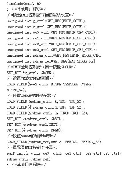 3.3 CCS開發(fā)環(huán)境中SDRAM配置程序源代碼? ?