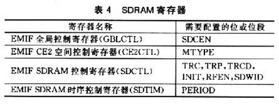 表4列出了配置SDRAM需要設(shè)置的EMIF寄存器名稱及相應(yīng)的位或位段。