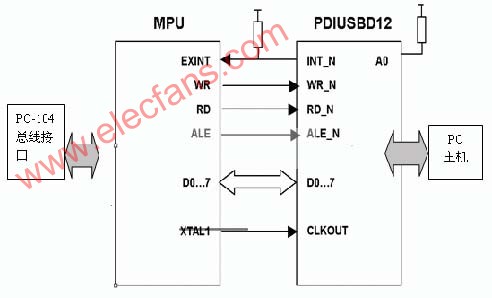 MCU與PDIUSBD12的接口電路