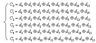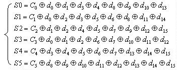 其中,d0~d15為16位數(shù)據(jù)(15為最高位MSB,0為最低位LSB),C0~C5為產(chǎn)生的六位監(jiān)督碼,表示進(jìn)行異或運(yùn)算。