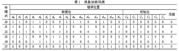 當(dāng)S= [1 1 0 1 0 0]時,數(shù)據(jù)錯一位,并且錯誤發(fā)生在d15位,可將d15位的數(shù)據(jù)取反加以糾正;