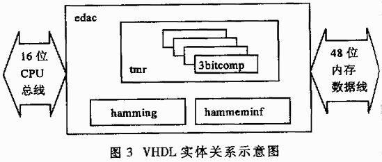 系統(tǒng)的時(shí)序性能是考慮的另一個(gè)關(guān)鍵因素。尤其是在高達(dá)幾十兆赫的內(nèi)存總線上,編解碼運(yùn)算較為繁瑣的漢明碼方案有著相當(dāng)?shù)木窒扌?。而TMR方案只需進(jìn)行簡(jiǎn)單的2/3判決,通常更能勝任苛刻的內(nèi)存訪問時(shí)間要求[4]。