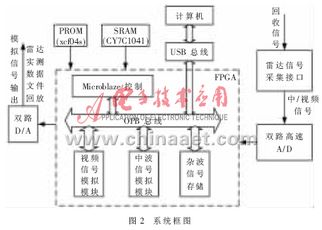 本文以FPGA為核心構(gòu)建了一種通用的雷達(dá)回波信號(hào)實(shí)時(shí)模擬系統(tǒng)。該系統(tǒng)采用FPGA作為回波信號(hào)模擬的運(yùn)算單元,充分利用了FPGA資源豐富、并行處理能力強(qiáng)的特點(diǎn),提高了系統(tǒng)的實(shí)時(shí)性;