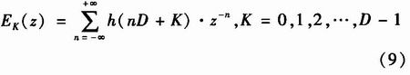 多相濾波器的基本概念是把FIR濾波器分割成若干較小的單元,然后組合這些單元的結(jié)果。首先,讓我們考慮一個(gè)基于常規(guī)8抽頭FIR濾波器的抽取子系統(tǒng)的符號(hào)表示,如圖11所示(為了使用這些例子,我們假設(shè)抽取
