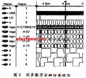 213 本文利用Max+ Plus 軟件對(duì)PCM30/ 32 路系統(tǒng)的發(fā)送端時(shí)序與幀結(jié)構(gòu)進(jìn)行了仿真,由仿真結(jié)果可以清楚地發(fā)現(xiàn)該系統(tǒng)發(fā)端時(shí)序的規(guī)律
