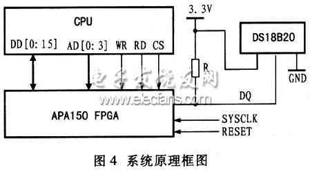 CPU、FPGA及DS18B20的連接原理如圖4所示。