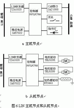 。 LIN的通信量小、配置靈活,采用單線連接及單主機(jī)/多從機(jī)的通信結(jié)構(gòu)(無需總線仲裁),可保證低端設(shè)備及電子控制單元簡(jiǎn)便、快捷的實(shí)時(shí)通信。 通過主機(jī)節(jié)點(diǎn)可將LIN與上層網(wǎng)絡(luò)(如CAN)相連接,實(shí)現(xiàn)LIN的子總線輔助通信功能,從而優(yōu)化網(wǎng)絡(luò)結(jié)構(gòu),提高網(wǎng)絡(luò)效率和可靠性。