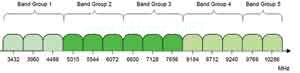圖1? UWB頻帶群,最新UWB物理層覆蓋頻帶群1和3