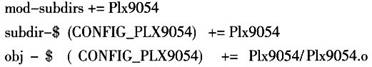 這樣做的目的是根據(jù)編譯選項(xiàng)$( CON-FIG_PLX9054)來決定是否要添加設(shè)備驅(qū)動。