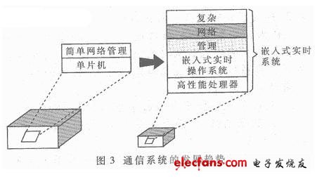 為了實(shí)現(xiàn)完善而高效的網(wǎng)絡(luò)管理,通信設(shè)備必須增強(qiáng)自身性能,從而為高層網(wǎng)管提供高性能的軟硬件平臺。因此,通信系統(tǒng)的設(shè)計(jì)出現(xiàn)了新的發(fā)展趨勢,如圖3所示。
