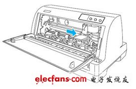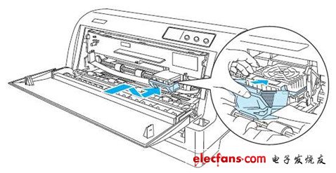 4、旋緊色帶旋鈕,按圖所示:安裝色帶架。