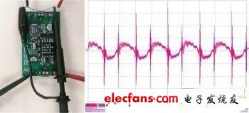 此外,把把示波器引線繞在鐵芯上可減小這個(gè)電流,因?yàn)檫@樣會(huì)形成一個(gè)不影響差分電壓測(cè)量、但可降低由共模電流產(chǎn)生的測(cè)量誤差的共模電感。圖2顯示了采用改進(jìn)測(cè)量技術(shù)對(duì)同一電路得到的紋波電壓測(cè)量結(jié)果。可以看到,高頻尖刺已幾乎消除。