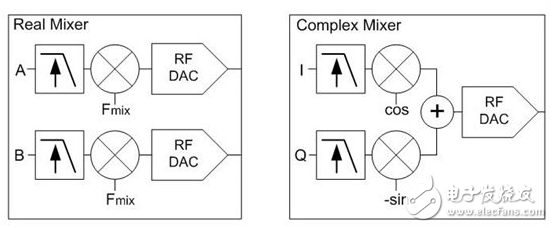 在通信系統(tǒng)中,數(shù)字處理器可饋送或接收基帶頻率下的數(shù)字數(shù)據(jù);這能讓數(shù)據(jù)速率保持合理的速度以供處理。采用傳統(tǒng)的收發(fā)器架構(gòu),數(shù)據(jù)轉(zhuǎn)換器工作時支持低頻模擬信號。在該隊列的其它地方要有附加的模擬混頻器,以便將較低的頻率轉(zhuǎn)換成較高的頻率或?qū)⑤^高的頻率轉(zhuǎn)換成較低的頻率。