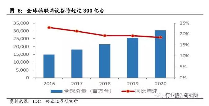 作為物聯(lián)網(wǎng)軟件和數(shù)據(jù)傳輸?shù)妮d體,2016年全球物聯(lián)網(wǎng)安裝設(shè)備已達(dá)到148.66億臺(tái),而五年后全球設(shè)備數(shù)量將超過(guò)300億臺(tái),年復(fù)合增長(zhǎng)率達(dá)20.2%。