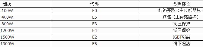 4958 電磁爐故障代碼表萬(wàn)和電磁爐故障對(duì)照表 100W燈 E0 :