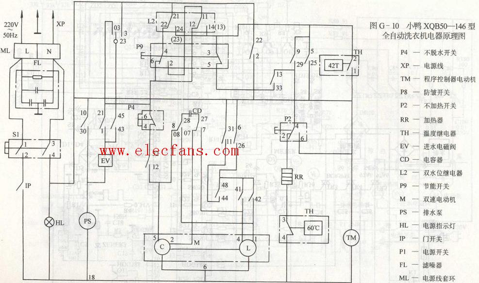小鴨全自動洗衣機(jī)電路原理圖XQB50-146型