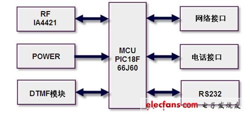 主控器采用PIC18F66J60,是microchip公司新推出的一款以太網(wǎng)微控制器,具有出色的計算性能、豐富的功能集以及極具競爭力的價格,包括一系列串行通信外設(shè),多至2個獨立增強型USART 和2個主控SSP模塊,能夠進行SPI 和I2C? (主控和從動)模式操作,具有嵌入式以太網(wǎng)控制器模塊。