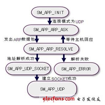 ⑤SM_APP_UDP: 進(jìn)行UPD連接模式下的數(shù)據(jù)接收和發(fā)送。