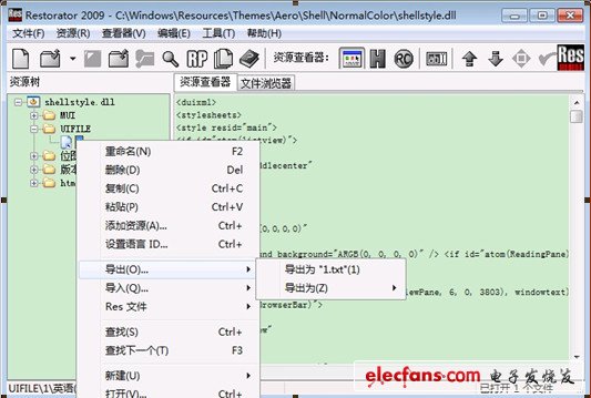 2、用 Restorator打開C:\Windows\Resources\Themes\Aero\Shell\NormalColor目錄下的 shellstyle.dll文件