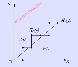 由 的數(shù)值(稱(chēng)為“偏差”)就可以判別出P點(diǎn)與直線(xiàn)的相對(duì)位置。即: