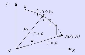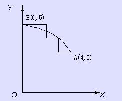 運(yùn)用上述法則,利用偏差判別式,即獲得圖2—2折線(xiàn)所示的近似圓弧。