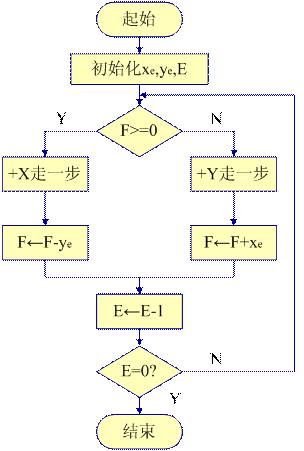 (2) 進(jìn)給。根據(jù)判別的結(jié)果,決定控制哪個(gè)坐標(biāo)(x或y)移動(dòng)一步。
