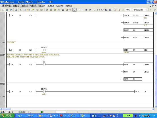 由以上分析可以看出,高速繞線機的瓶頸在于高速運算及響應(yīng),而臺達20PM運動控制器除邏輯控制CPU外具有獨立的高速運算CPU,由硬件直接完成高速運算響應(yīng),2軸同步控制時間小于0.5ms,達到高速繞線需求。關(guān)于臺達20PM運動控制器電子凸輪功能及應(yīng)用在上面章節(jié)已有描述。