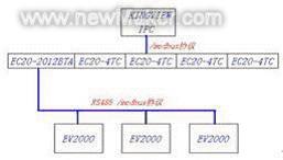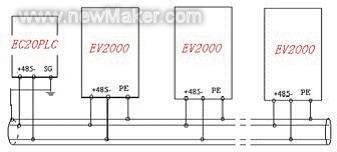 由于EMESON EC20 PLC和EV2000變頻器(非標)都集成MODBUS協(xié)議,所以實現(xiàn)它們的通信相對比較簡單,整個網(wǎng)絡(luò)采用RS485通信方式。