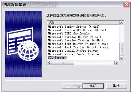 第二步:在用戶DSN 選項卡片上,單擊添加按鈕,出現(xiàn) 創(chuàng)建新數(shù)據(jù)源 對話框,選擇SQL Server(圖3)。