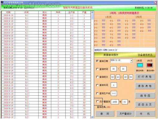 可以任意查詢一車間、二車間任何生產(chǎn)線(共26條生產(chǎn)線)任何時段的產(chǎn)量。具體明細如下: